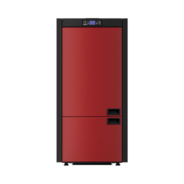 Ten kocioł na pellet łączy nowoczesną technologię z eleganckim wyglądem. Niska konstrukcja sprawia, że uzupełnianie pelletu jest wyjątkowo wygodne. Dopracowany design w głębokiej czerni i bordowych akcentach nadaje urządzeniu wyjątkowego charakteru – kocioł nie tylko ogrzewa dom, ale też prezentuje się estetycznie w każdej kotłowni.