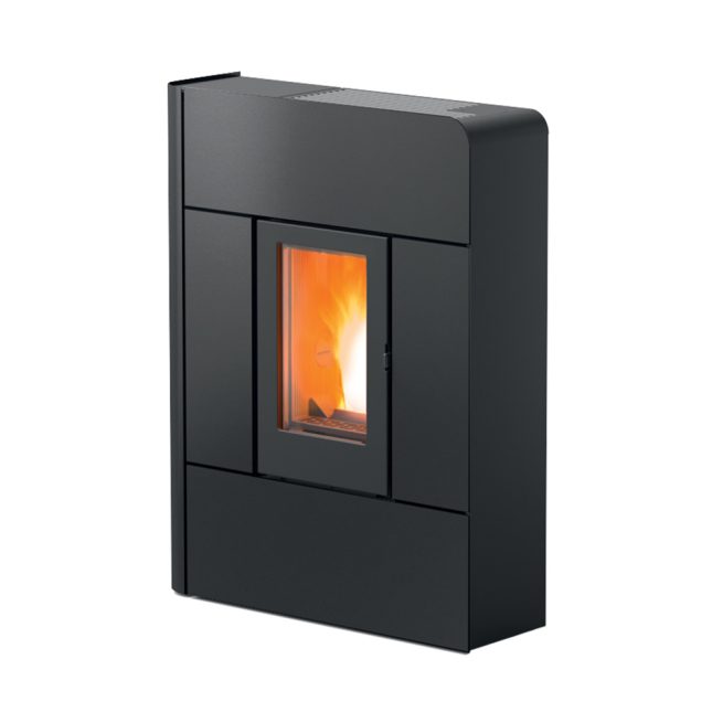 Ekonomiczny, szczelny, smukły piec na pellet, idealny do korytarzy i małych pomieszczeń.