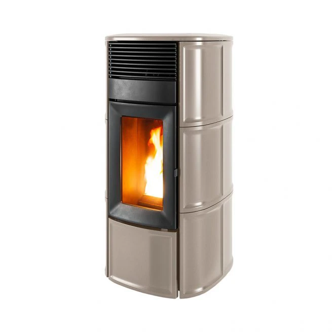 Jest to piecyk powietrzny, najbardziej klasyczny model piecyka na pellet. Pojedynczy wentylator, mocny, ale cichy, skutecznie rozprowadza ciepłe powietrze w pomieszczeniu, w którym zainstalowany jest piec, sprawiając, że w ciągu kilku minut staje się ono ciepłe i przytulne. W zależności od tego, jak dobrze izolowany jest dom i jak jest rozplanowany, piec ten może również ogrzewać bardzo duże pomieszczenia. Moc wentylatora można wybrać w zależności od potrzeb. Ciepły, mocny powiew, aby szybko ogrzać dom lub ledwo wyczuwalny szept, jeśli chcesz utrzymać tę samą temperaturę.